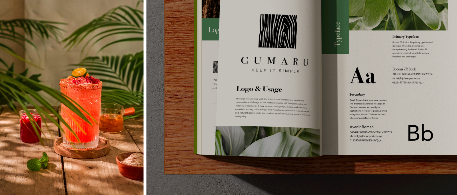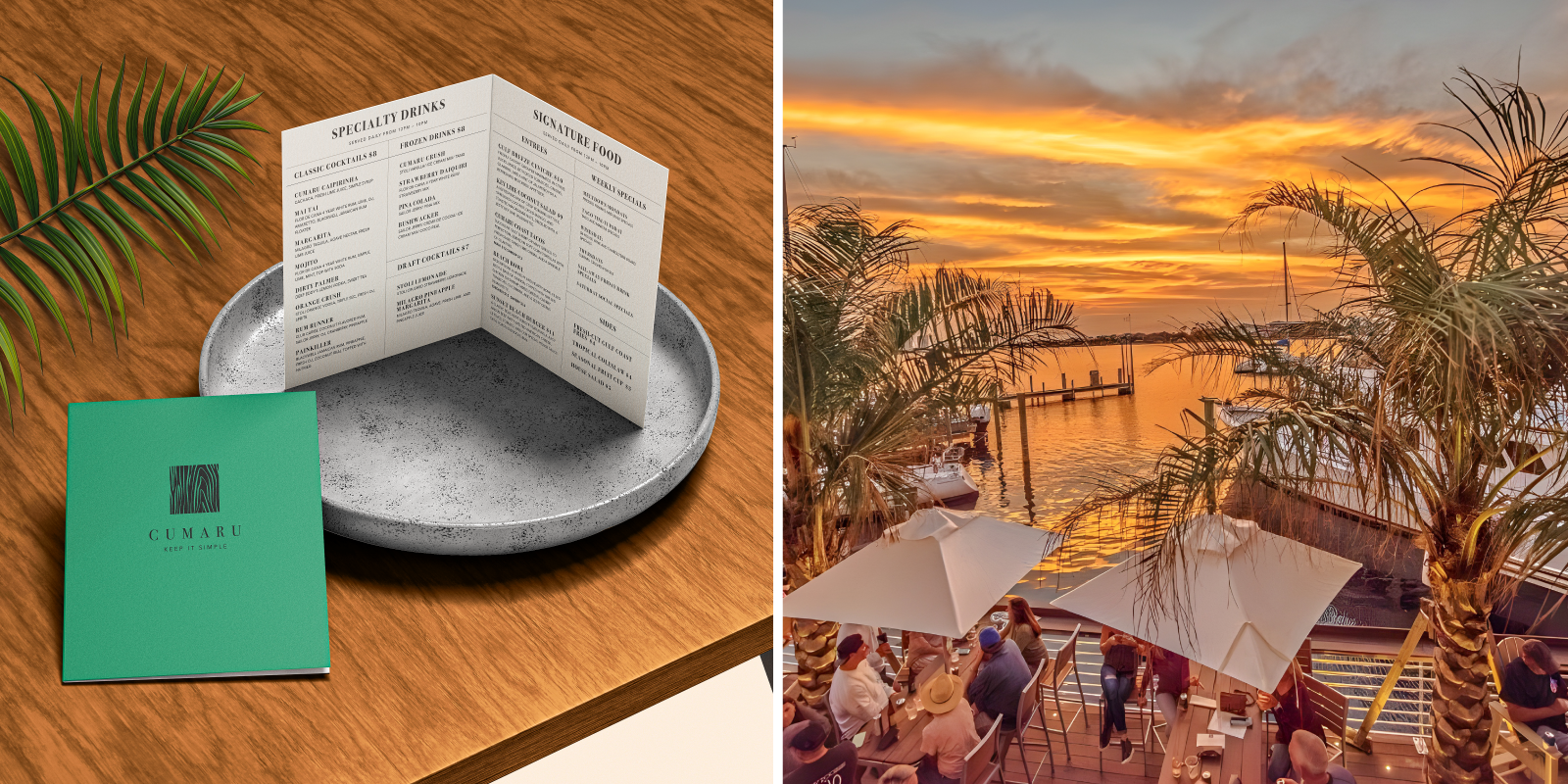 “Keep it simple,” the tagline, was chosen to symbolize Cumaru’s philosophy of providing an uncomplicated and delightful experience in a laid-back ambiance that allows patrons to unwind and relish the views from the bar. The brand identity adopted the phrase as its guiding philosophy.